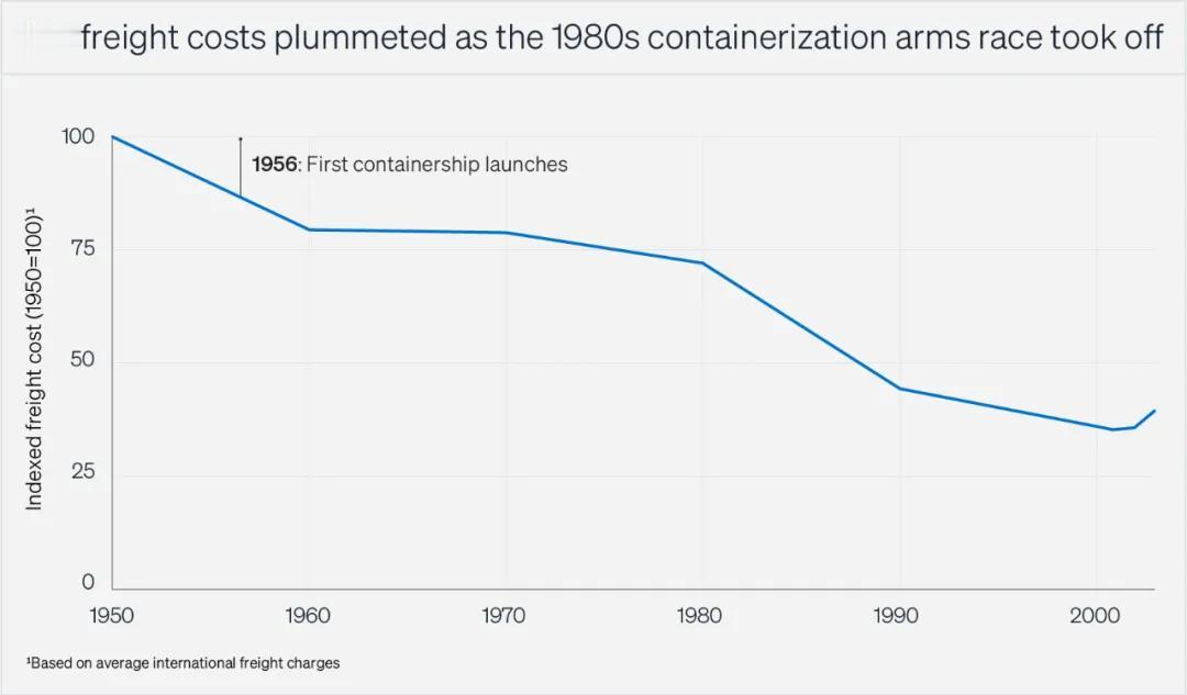 随着1980年代集装箱化竞赛的展开,海运成本暴跌