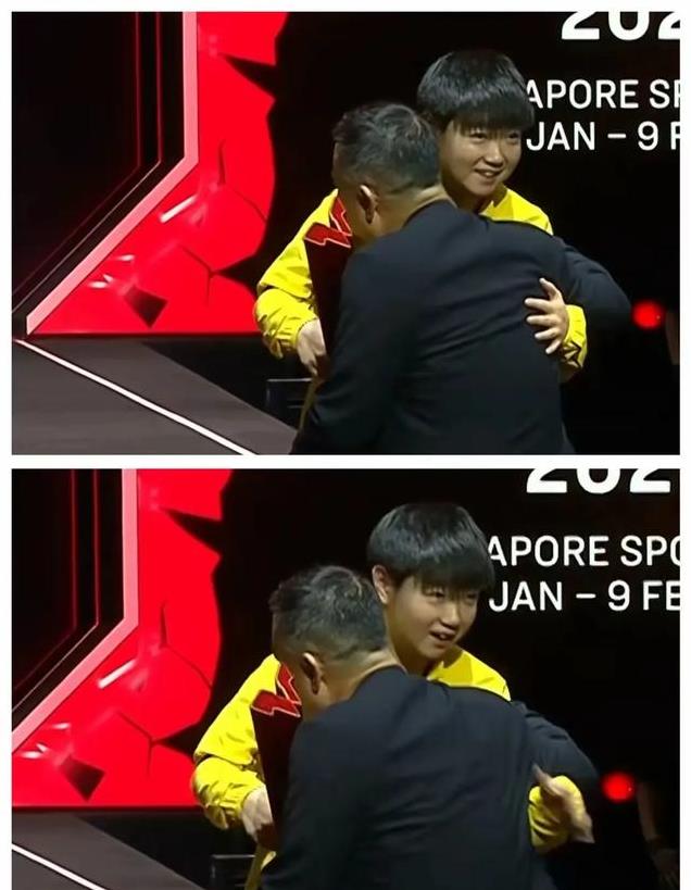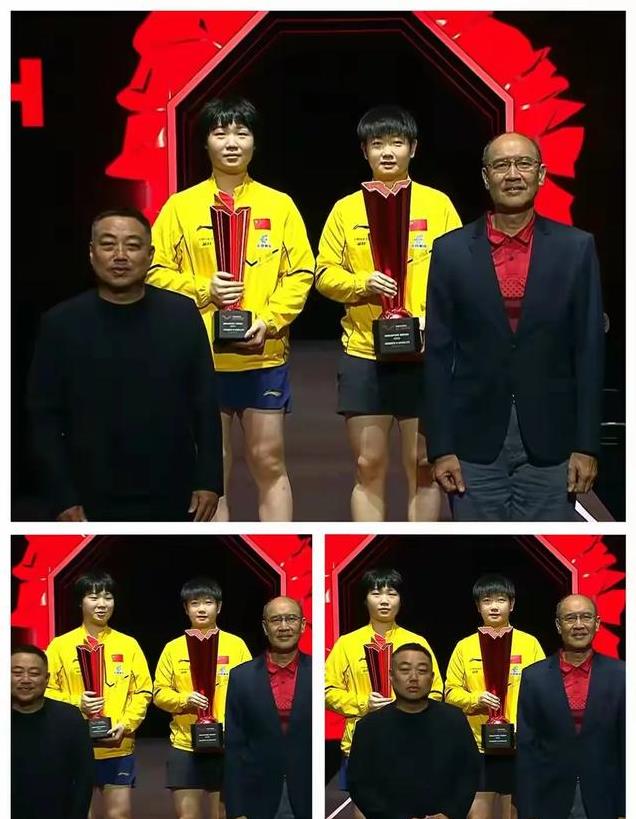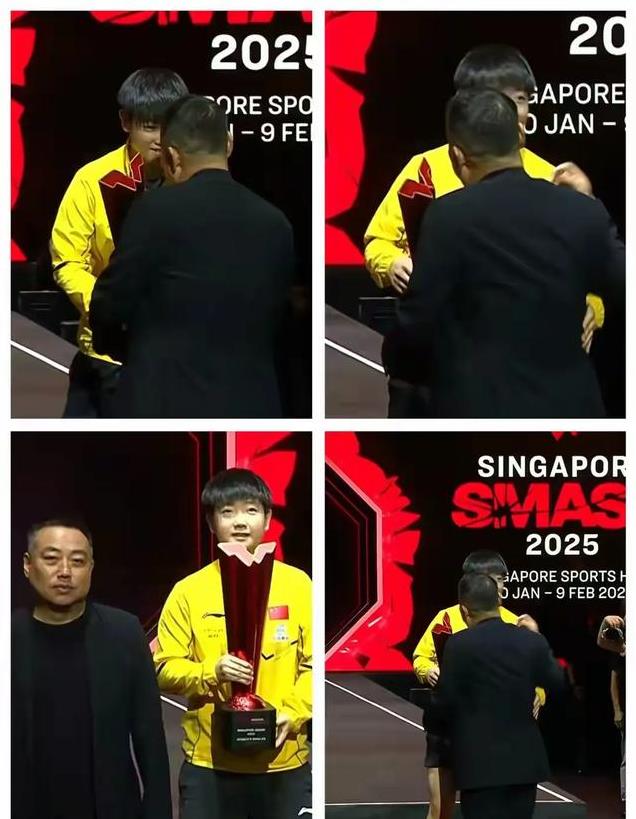 颁奖礼刘主席为孙颖莎颁奖并拥抱,孙颖莎笑开颜,蒯曼服输开心