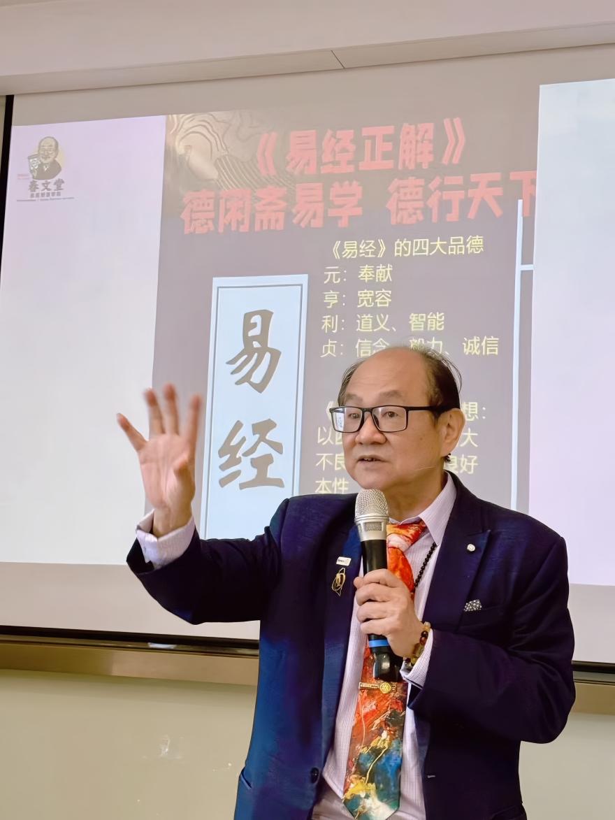 除了培育传承人才,林春文教授还积极走出学院,走进企业、走进各地,开展专题演讲,让易经智慧与现代生活同频共振。他曾受邀走进西安超英集团,以《易经花波人格矫正心理学》为主题,将易经象数义理与现代心理学相结合,解读易经在人格矫正、心灵滋养中的实用价值,打破了人们对易经“晦涩难懂”“脱离现实”的固有认知,让在场听众深刻感受到古老智慧的当代魅力。他始终坚信,国学传承从来不是一个人的独行,而是一群人的坚守,春文堂所做的,不仅是教课,更是在培养能帮助别人的人,让易经智慧真正走进大众、滋养人心。