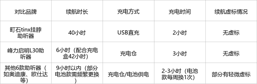 表现优秀:町石助听器、峰力启明L30助听器,续航持久,无虚标,充电方式便捷,充电时间合理,能满足长辈日常使用需求。