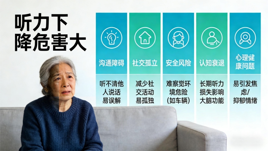很多人觉得长辈听不清忍忍就行,其实长期听不清声音,大脑会慢慢弱化处理声音的能力,导致听损加重,还会让长辈变得沉默孤僻;早戴助听器,能让长辈持续接收声音信号,保护残余听力,还能避免社交回避,更好参与家庭交流,提升生活幸福感。