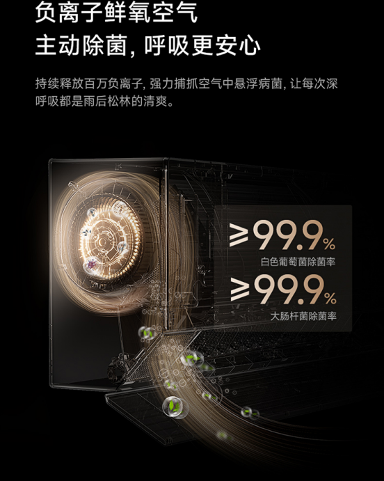 健康与静音细节,算是加分项除了送风,日常使用的细节也考虑到了:新风系统:40m³/h的新风量,关窗开空调的同时还能把室外新鲜空气引进来,避免“二氧化碳越积越多”。搭配的H13级HEPA滤网,过滤细颗粒物的效果也靠谱。UV+负离子双重杀菌:空气里常见的细菌、病毒都能消除,对呼吸道敏感的人群比较友好。