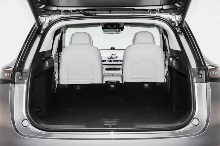 尺寸上,新车长宽高对应4780x1890x1725mm,轴距2800mm,属于一个标准的中型SUV体格。接下来看车尾,和大街上常见的新能源SUV设计风格相似,线条轮廓给人圆润饱满的感觉,贯穿式LED尾灯集成细密立体的线条元素,点亮时风格醒目,辨识度出众。关键地方是整台车的后备箱,它的后备箱进深长度可观,常规容积为470升,将二排座椅放倒以后,后备箱拓展空间来到了1456升,平时出行装一些大包小包也没问题。