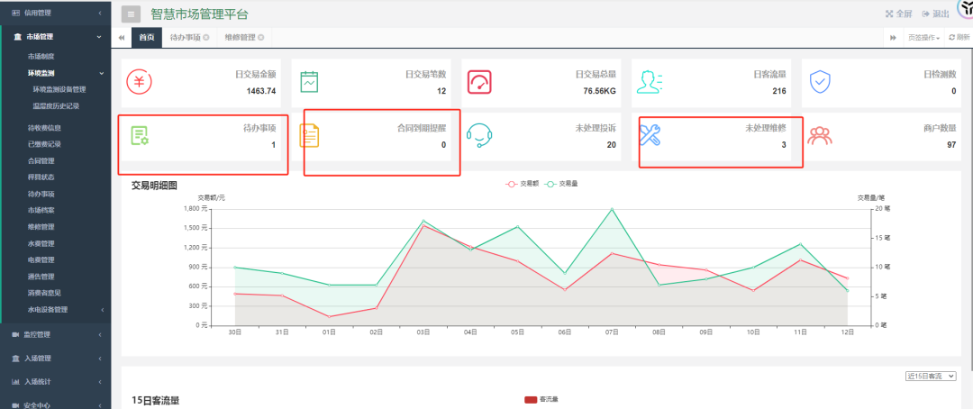 同时智慧化后台也能给商户提供专属经营数据分析,助力精准备货、合理定价,提升盈利效率。此外,还能简化缴费、报修等流程,降低商户与市场方的沟通成本,提高摊位续租率和新商户入驻意愿。