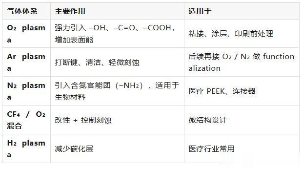 等离子改性的常用气体体系