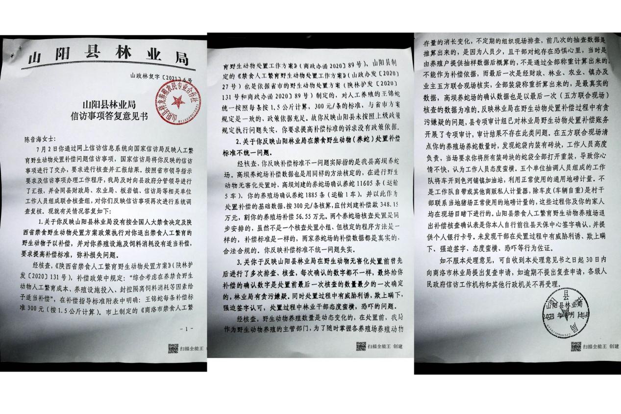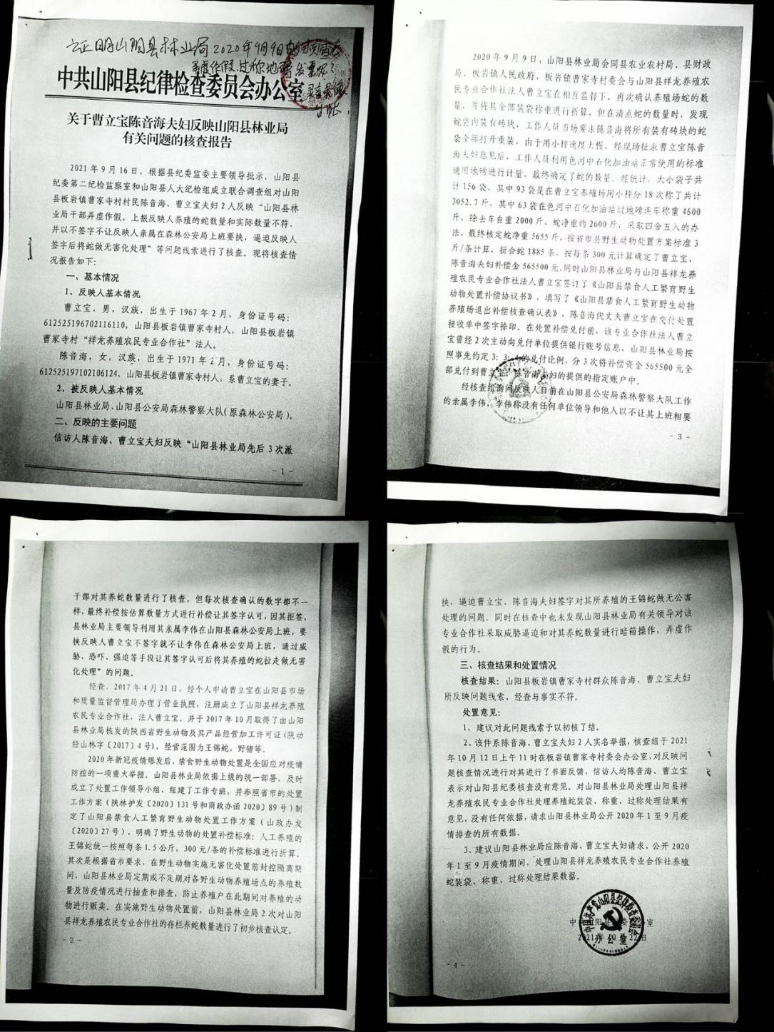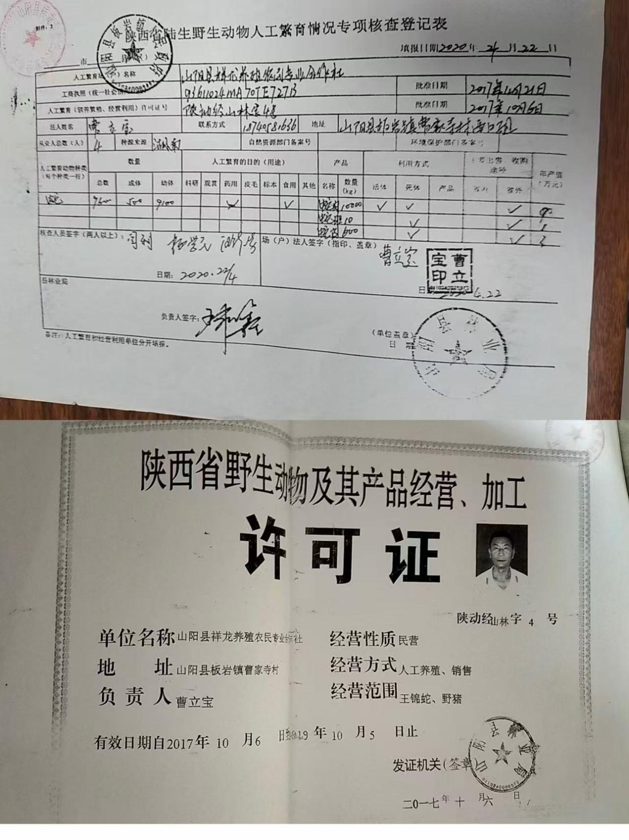 2020年8月27日,山阳县林业局、镇政府、村委会与曹立宝共同签署《清点核实确认表》,确认其合作社王锦蛇总量为19,403公斤。然而,在2020年9月9日,政府单方面在无通知、无称重记录、无录像、无第三方见证的情况下,将核定数量骤减至1885条(约2827公斤),降幅超过85%。