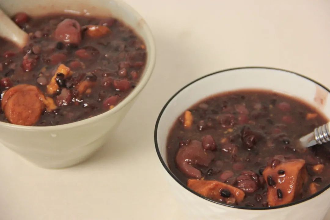 今天的粥,放了红豆,黑米,糯米,红枣,桂圆,红薯。