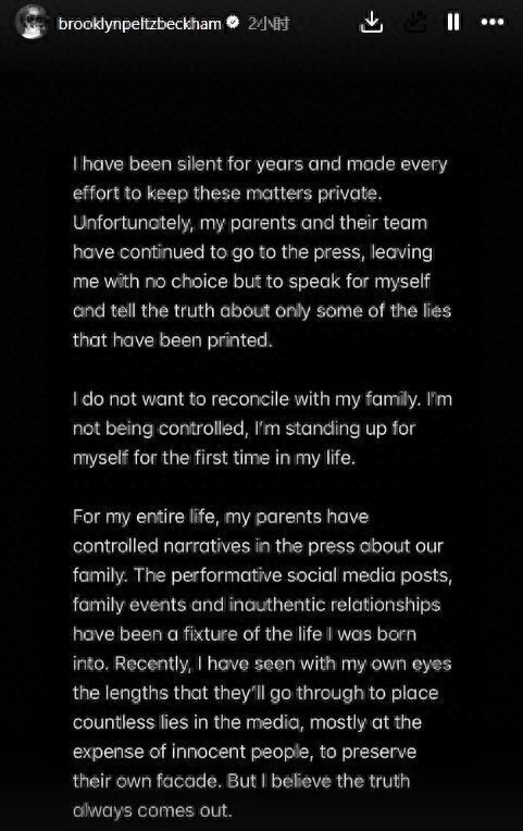 多年来,我一直选择沉默,并竭尽全力将这些事情留在私人层面。然而,我的父母及其团队不断向媒体发声,让我别无选择,只能亲自站出来,为自己说话,并澄清部分已经被刊登的谎言。