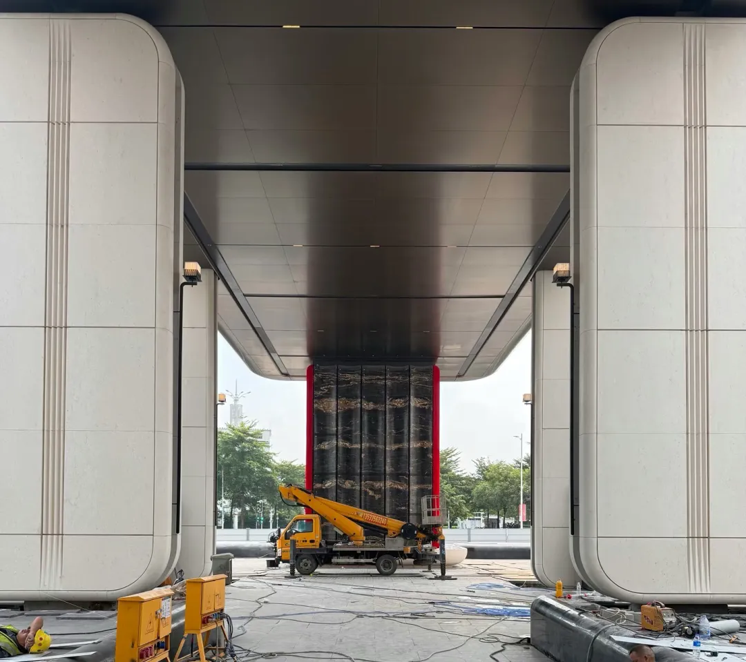 大概类似什么效果呢,写字楼的感觉,你在外圈,看不到一堵墙,都是金属+玻璃幕墙。