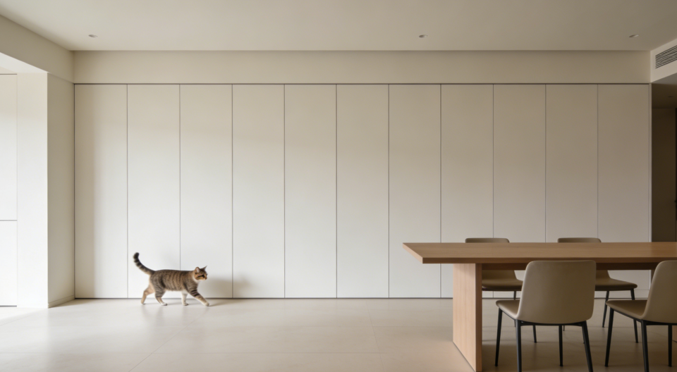 极简不等于空旷。新一代的“消失式收纳”强调与建筑墙体完全融合。通顶的隐形门储物墙、与墙面平齐的踢脚抽屉、藏在造型背后的储物柜……将物品“藏”于无形,视觉上极度清爽,同时满足海量收纳需求,是“减法生活”的终极实践。