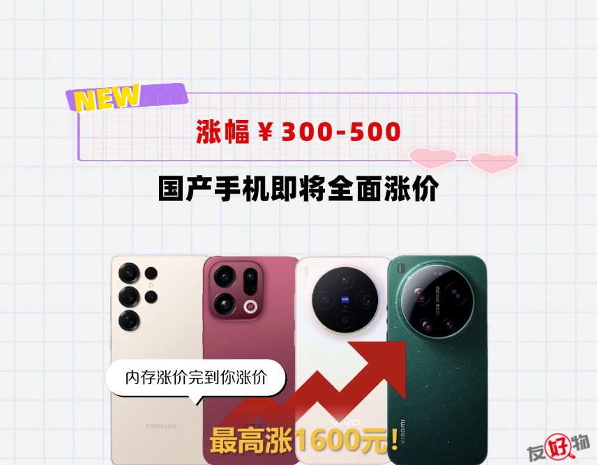 各位等等党们请立即停止购买一切新机,因为手机价格即将失控。目前供应链已经有实锤消息,由于内存芯片价格暴涨,这个月起国产手机价格将会油门焊死,一路狂飙。