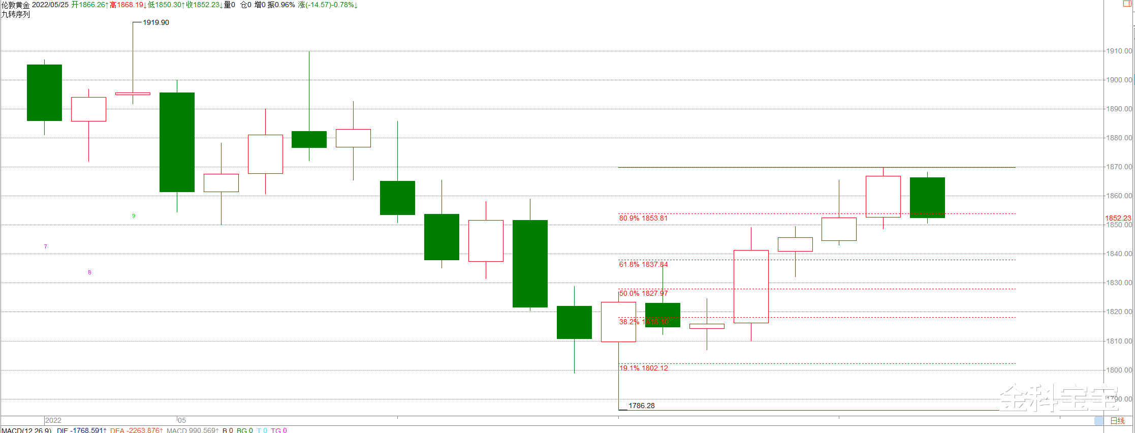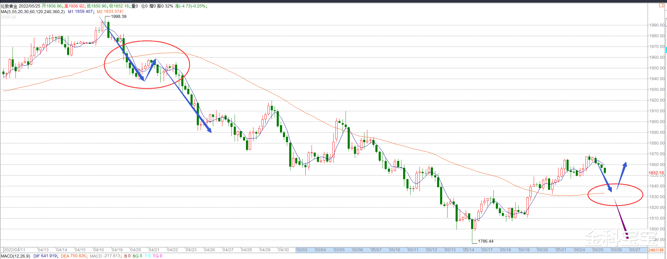 首先我要说明一点,黄金这里上方并没有破位,我前面在文章也给你们说过黄金日线的压制点在1867这里。