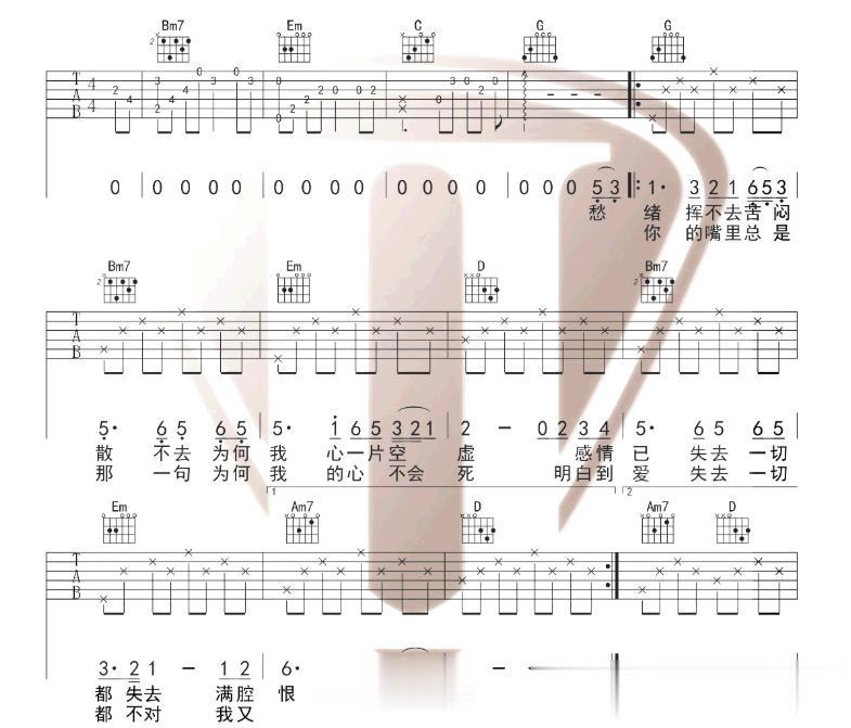 起(第一句): “愁绪挥不去苦闷散不去” ,旋律以三组的低音区平稳开始,奠定情绪基调,以深沉为主,最大音程跳跃足足有一个八度。“愁的低音3”到“挥”的“”挥,足足有一个八度音高是B2到B3。这种低音八度在第一句,会非常具有抓耳效果。起的情绪非常高。作曲上讲,其实对于调式和音区的要求是比较高的。承(第二句): “为何我心一片空虚” - 旋律线开始进入中音区,微微上扬,承接上一句的情绪并加以发展。同时贡献了作曲的最高音“心”字,来到了G调的G4高音。这个音对于男歌手而言已经很高了。尤其是在1990年左右唱功普遍匮乏的港乐。相比于四大天王已经呈现出来专业职业歌手和业余偶像的差别。转(第三句): “感情已失去一切都失去” - 旋律音域开始进入了中高音,但是过度想了中高音,整体的跨度更小,情绪更集中,明显提高,达到一个小高潮,情绪产生转折和波澜。合(第四句): “满腔恨愁不可消除” - 旋律回落,与开头呼应,形成一个完整的乐段。这种结构使得他的歌曲即使不加修饰,清唱也极具叙事感和完整性。
