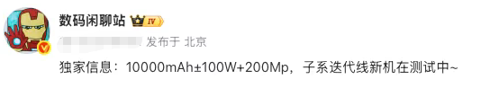 继荣耀WIN系列、荣耀Power 2之后,又一个万级大电池的手机要来了。根据最新爆料,红米Note系列新机正在测试10000mAh超大电池、100W快充以及2亿像素镜头组合,这款被猜测为红米Note17ProMax的新机再次刷新了我们对千元手机的认知。