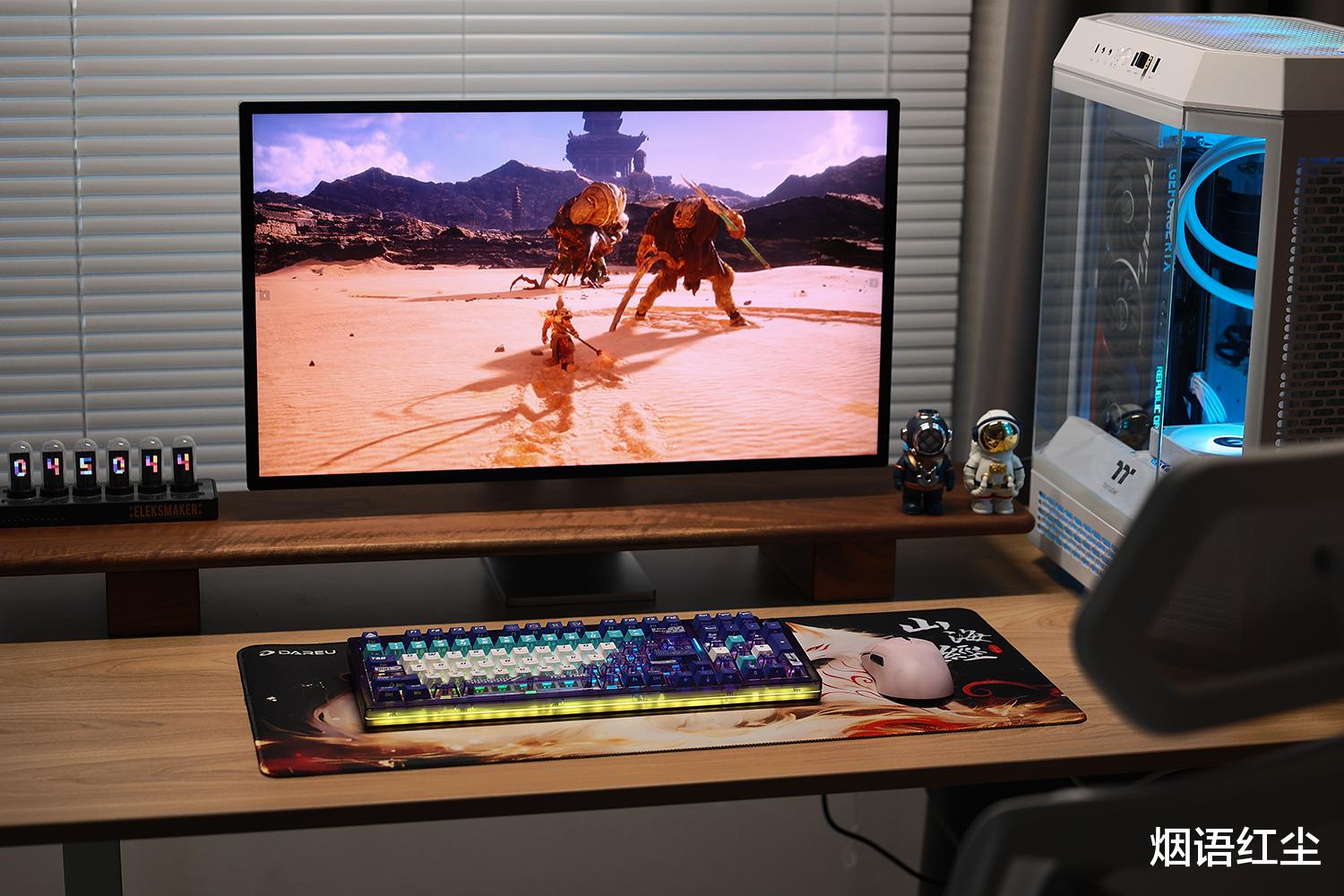 在穿越火线、和平精英等需要快速反应的FPS游戏中,达尔优COOL98键盘的1ms低延迟响应确保了按键信号即时传达,能助我们抢占先机,其全键无冲设计则能精准记录每一次复杂操作,有效避免键位冲突导致的失误。面对黑神话悟空这类对硬件有一定要求的3A大作,键盘的Gasket结构配合多层消音填充,能带来纯净、集中的按键声音,减少空腔音等杂音干扰,能让我们沉浸于游戏世界的视听盛宴。桃C拿铁轴的线性手感触发迅捷,长时间游戏操作也不易疲劳。