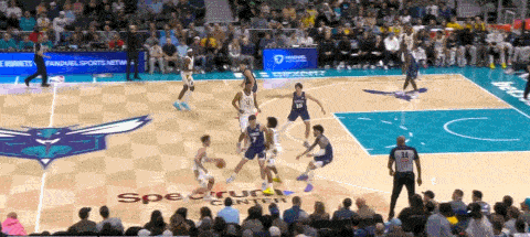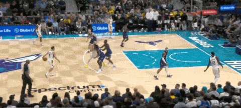 弧顶的三人配合,麦康奈尔flip接球后迅速和布拉德利掩护,因为前置配合下,塞克斯顿没有守在中路,这给了布拉德利快速切入接球的机会,麦康奈尔送出口袋传球助布拉德利打成2+1。