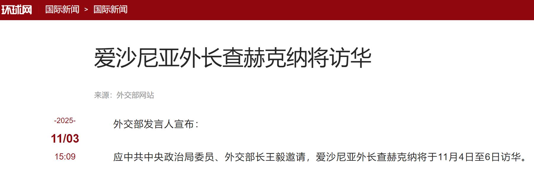 就在同一天,我外交部发言人宣布,应王毅外长邀请,爱沙尼亚外长将于11月4日至6日访华。
