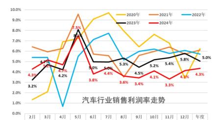 2017年,中国汽车行业的整体利润率是7.8%,到了2024年已经降到了4.3%。
