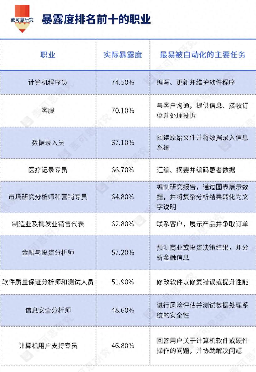 从上述研究我们可以看出,计算机相关的职业正处在AI影响最为直接的领域之一。