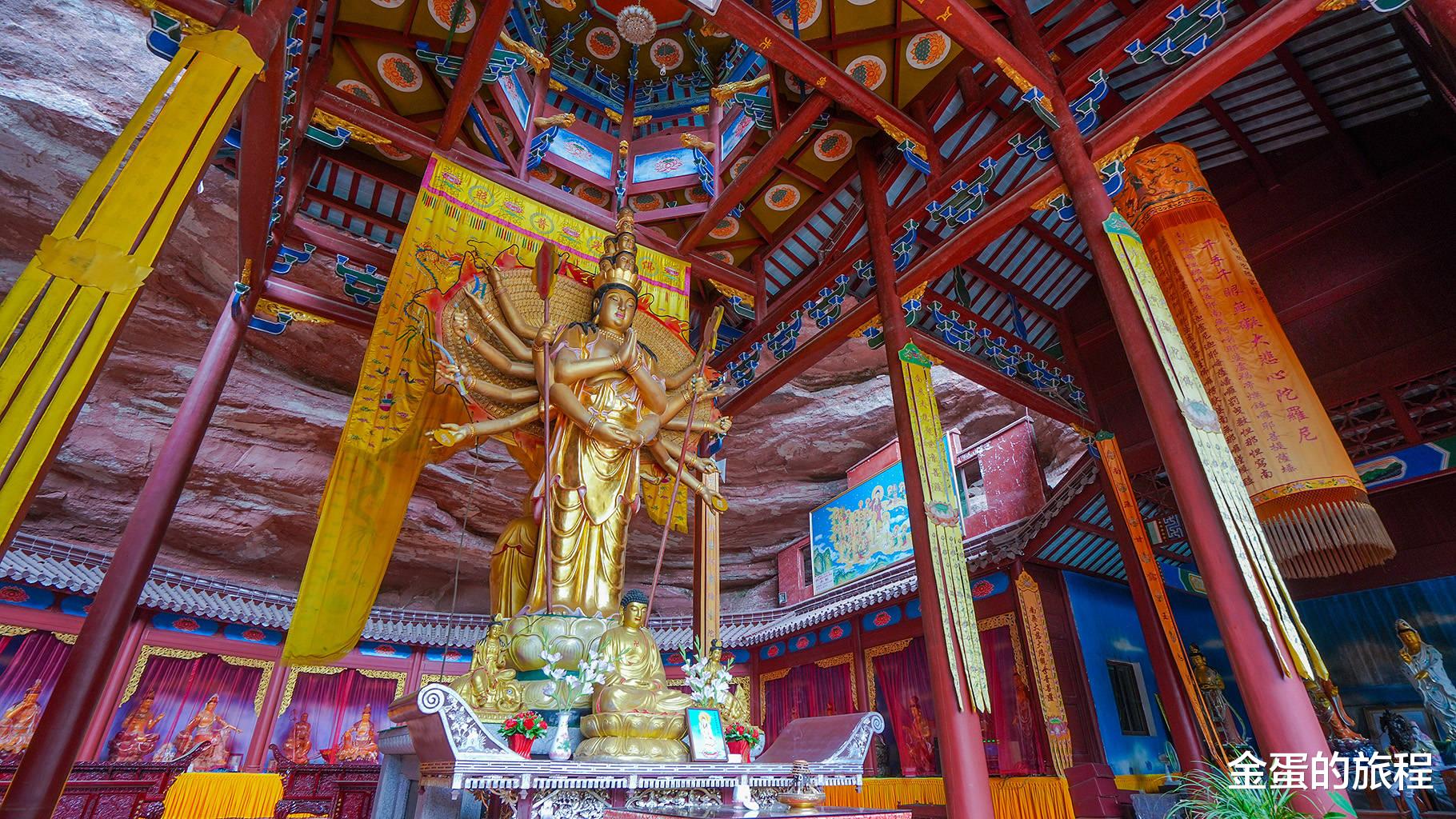 外观上看,这座大殿规模不算宏大,但走入其中便豁然开朗。大殿前部为常规殿宇构造,后半部则深入岩洞之中,借洞为殿,空阔深远,实际空间约为外部所见的两至三倍。石壁上设有长排的佛龛,供奉有不同的观音法相。