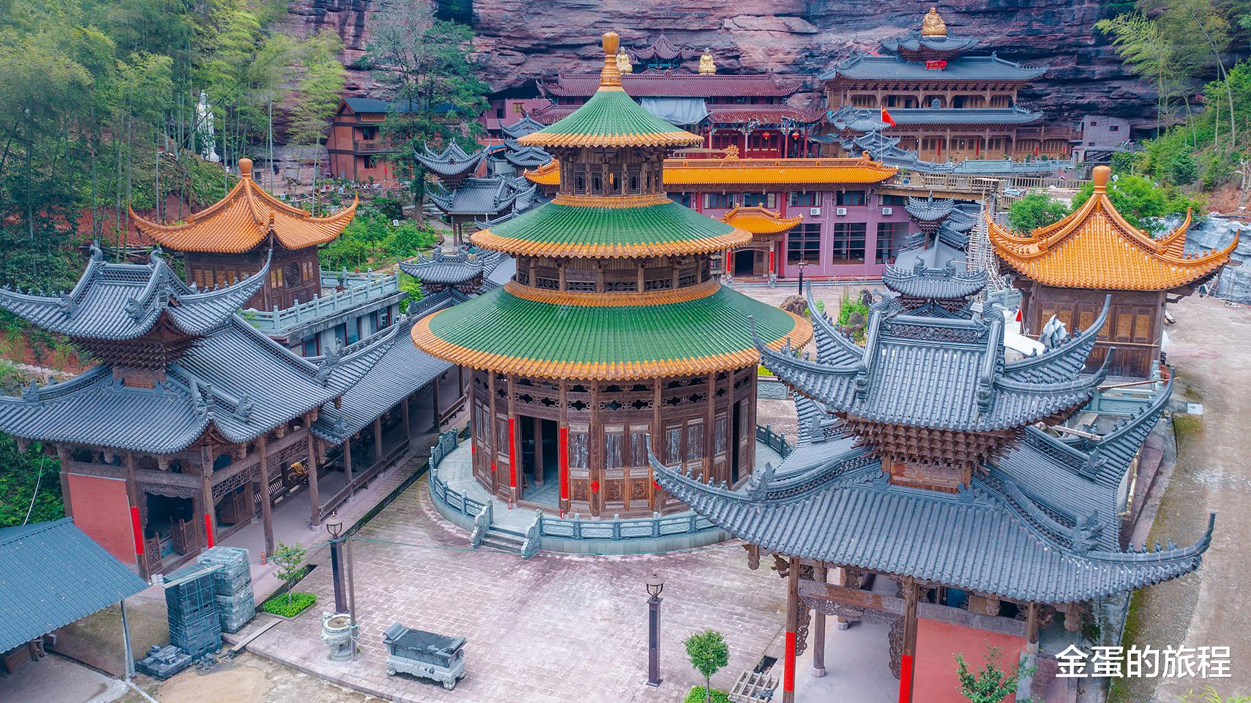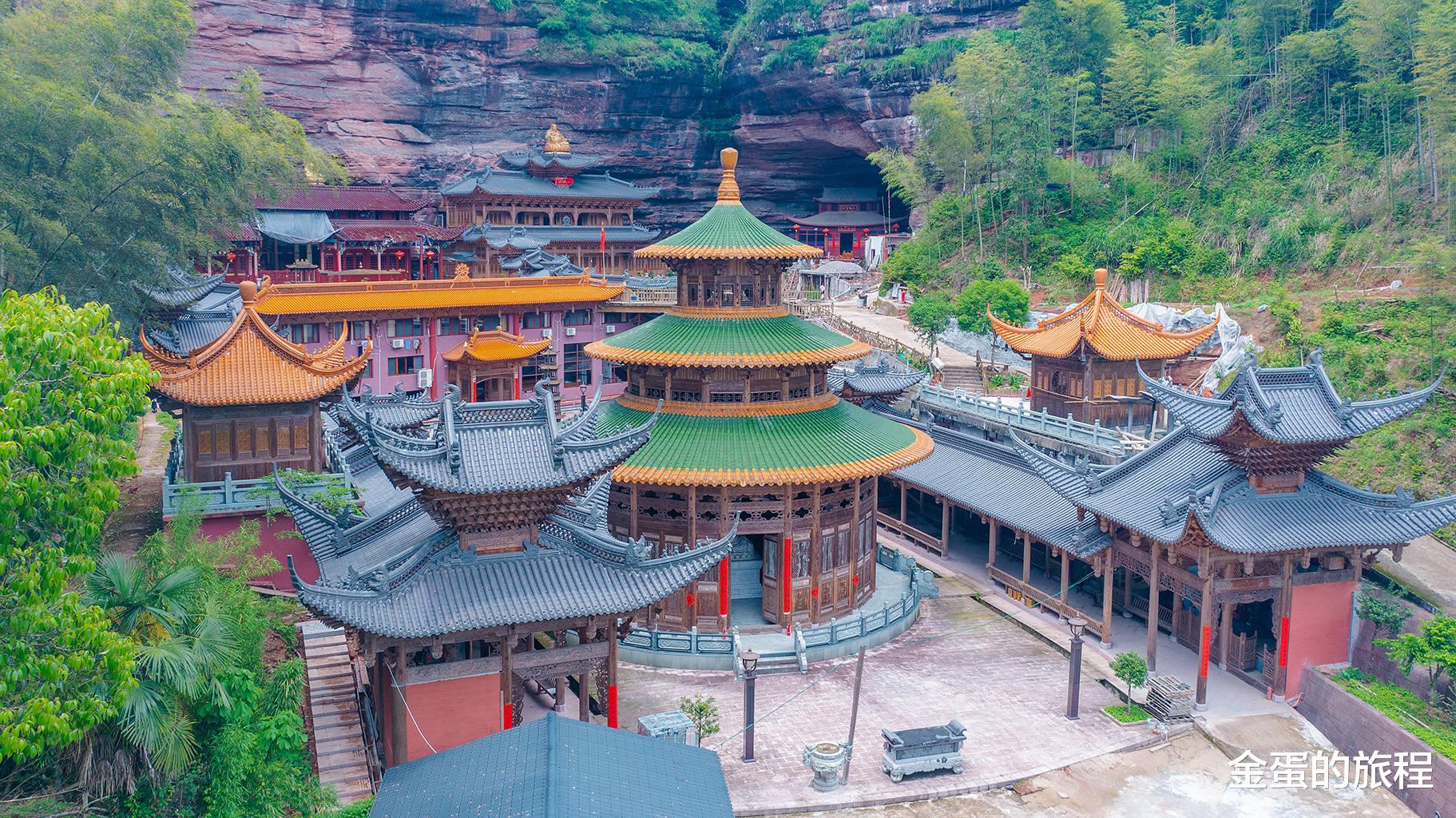赤壁丹崖筑禅境,飞檐翘角入梦来