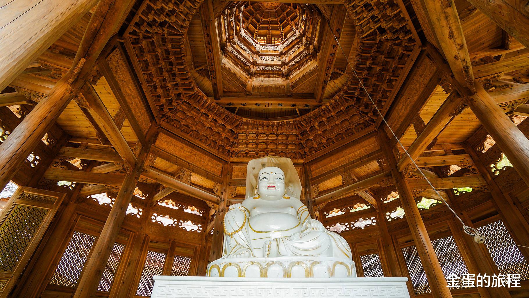 当我沿着蜿蜒山路抵达丰岩禅寺,走进巨大的木结构大门之后,眼前所见令人震撼,整座寺庙依丹霞岩地形而建,因山就势,错落有致,通过长廊步道连接各殿,气势恢宏又不失静谧。