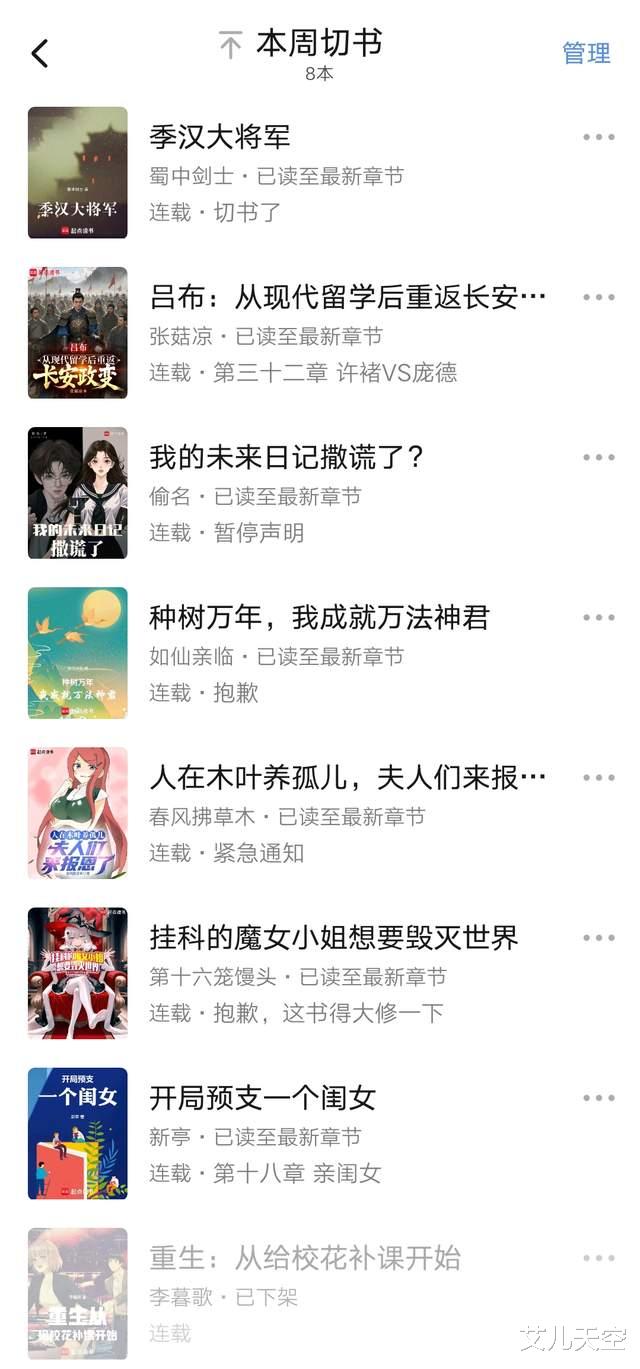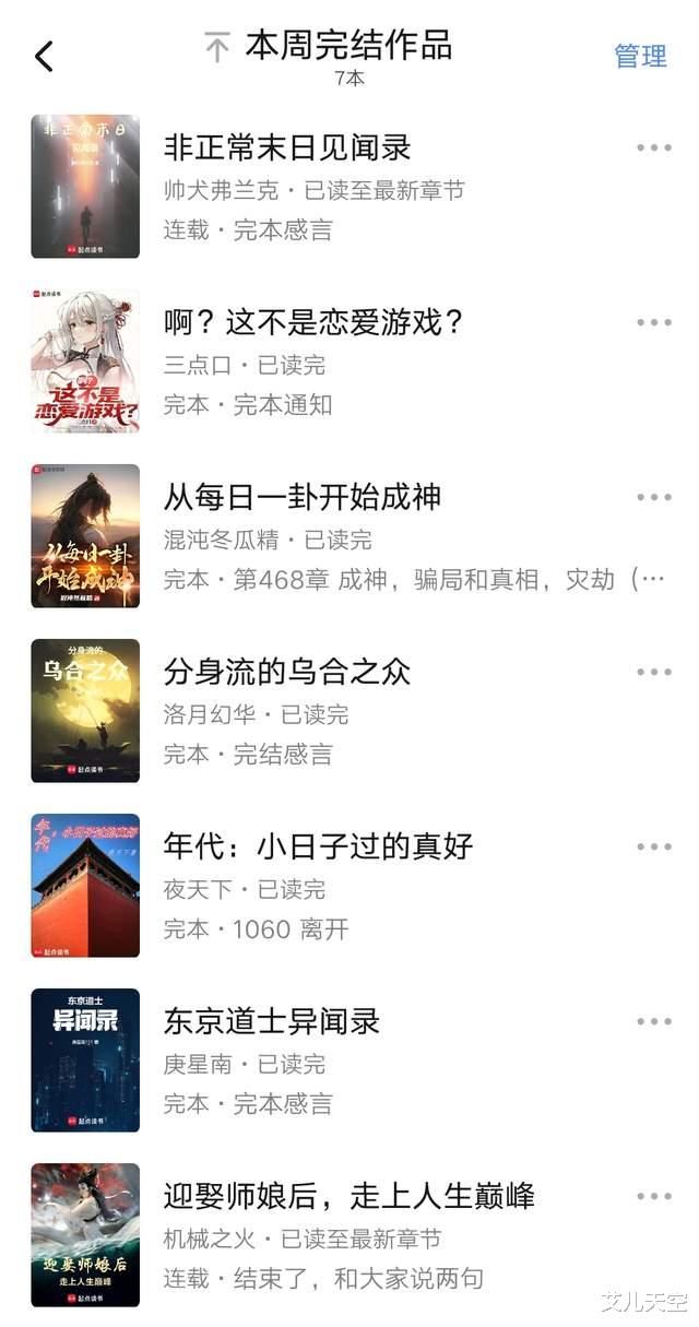 幼儿园一把手的《逼我重生是吧》,晨星的《这游戏也太真实了》,肘子的《第一序列》没有放上去。