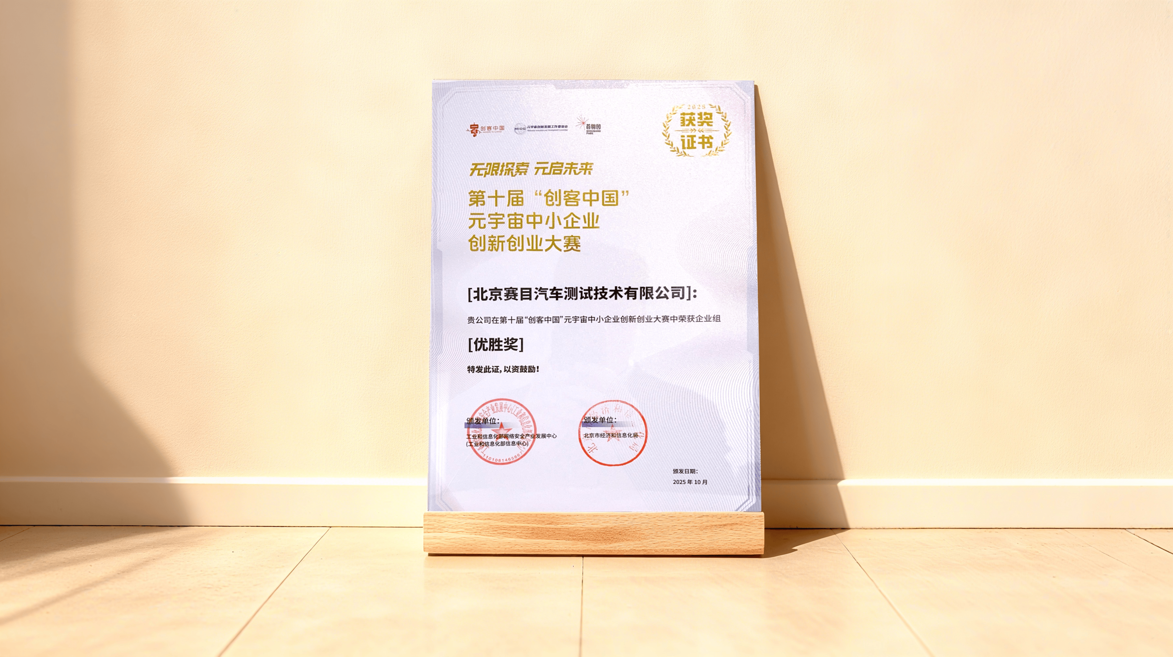 2025年10月30日,由工信部网安中心、北京市经信局、石景山区人民政府、首钢集团主办,元宇宙工委会、中关村石景山园区科委、首钢建投承办的第十届“创客中国”元宇宙中小企业创新创业大赛颁奖典礼在北京首钢工业园隆重举行。赛目科技旗下北京赛目汽车测试技术有限公司(简称:赛目汽测)凭借在智能网联汽车测试领域的技术突破与实践成果,从全国参赛团队中脱颖而出,再次荣获大赛“优胜奖”。