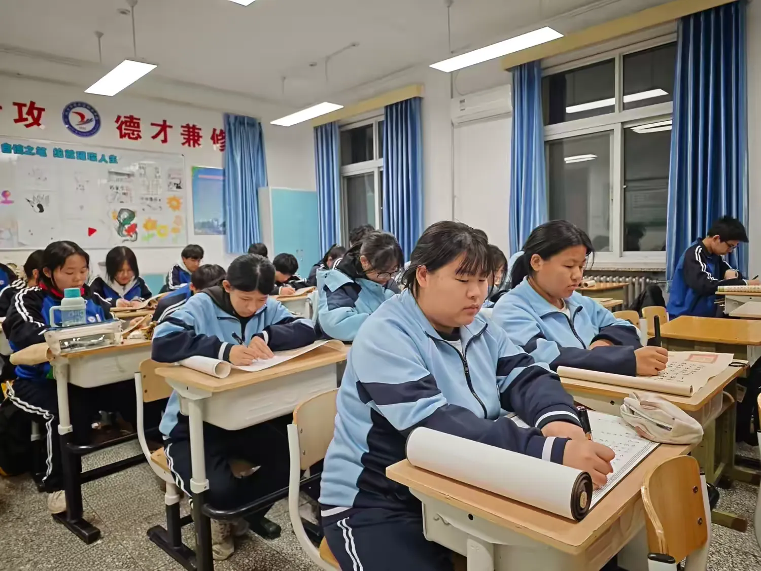 为确保活动有序有效开展,语文教师与班主任团队紧密协作,形成了“统筹规划、分层实施、全程指导”的活动模式。全校学生充分利用晚自习、下午自习课等课余时间,全身心投入书法临摹练习。学期末,语文教研组组织全体语文教师成立评审小组,对全校学生的临摹作品进行集中筛选、交叉评审,最终从数百份作品中精选出51份优秀作品,涵盖不同年级、不同专业,充分展现了学校学生的书法临摹成果。