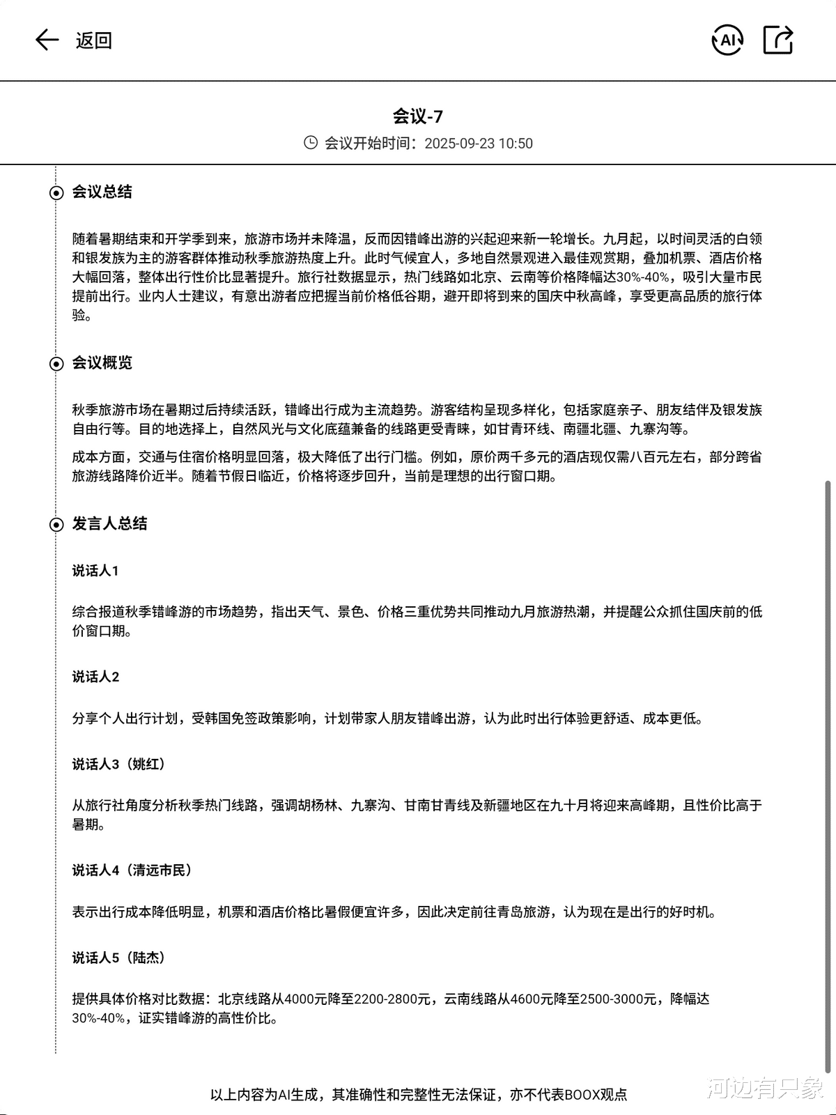 发言人的总结更是把提到的人名或者身份,比如“清远市民”都标注了,大大方便了会后的内容整理,值得为这个功能点赞。