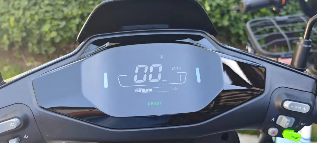 除了常规的钥匙、NFC 解锁,还支持感应解锁功能:车主靠近车辆,坐上坐垫后车辆自动启动,即便落下脚撑拧油门也不会误触发。