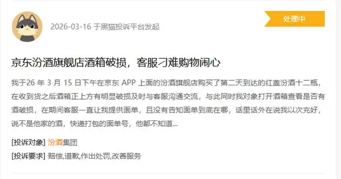 2026年3月,太原假酒事件受到人们的关注。据生活帮报道,秦先生为了满足业务需求,在创业街一家“汾酒特产店”先后六次购买了中高端产品“青花25年”,累计花费近一万元,送给客户后得知全部是假酒。