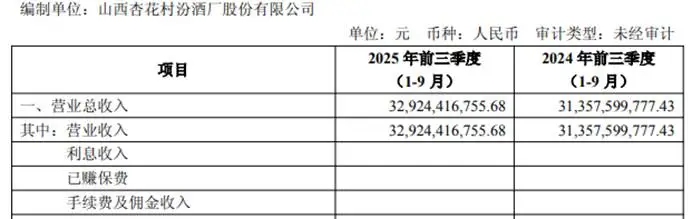 财报数据显示,在2025年1月到9月期间,山西汾酒的营业收入累计达到329.24亿元,同比增长了5%;归属于母公司的净利润累计为114.05亿元,同比仅增长了0.48%,显示短期业绩压力依然较大。