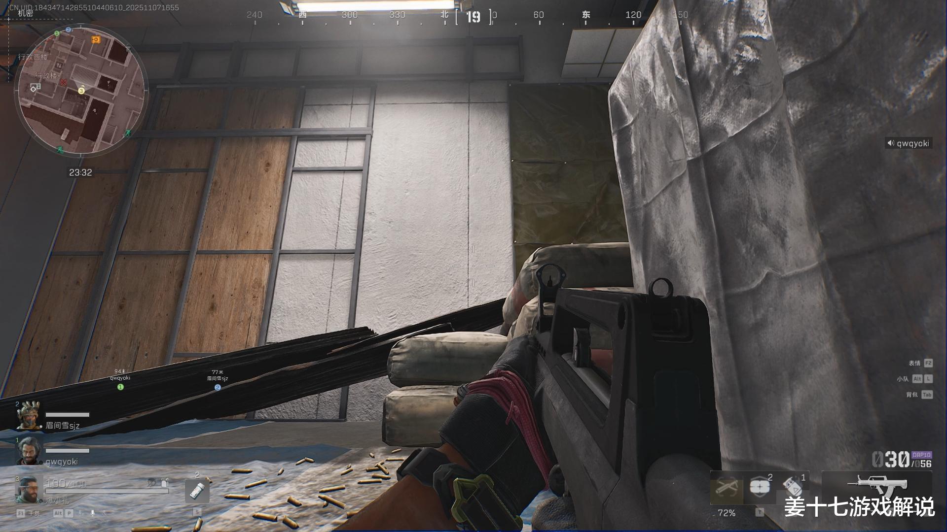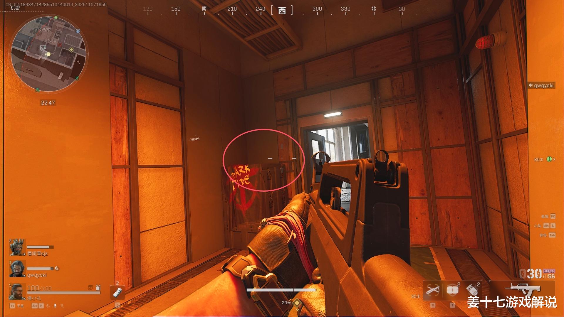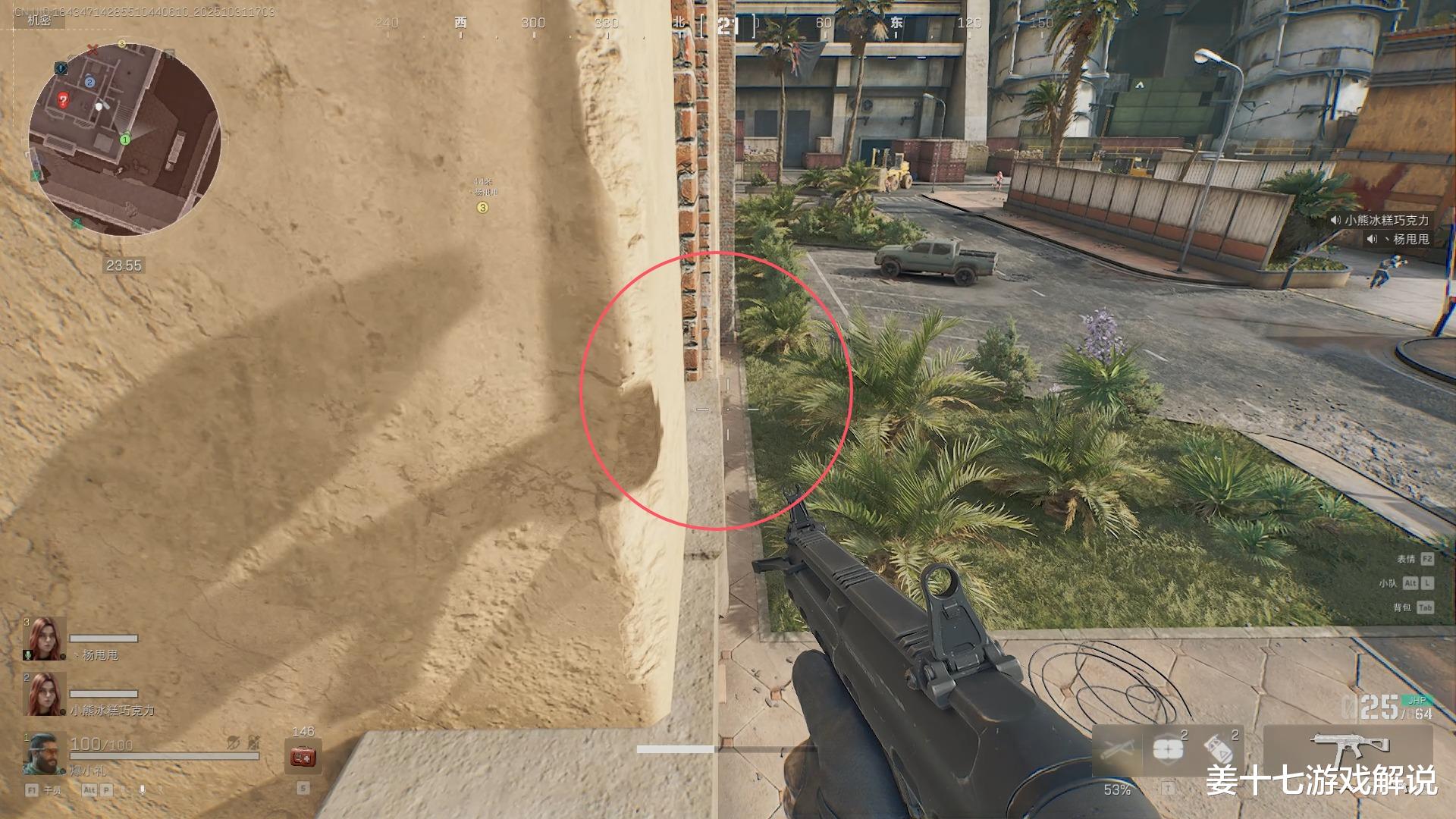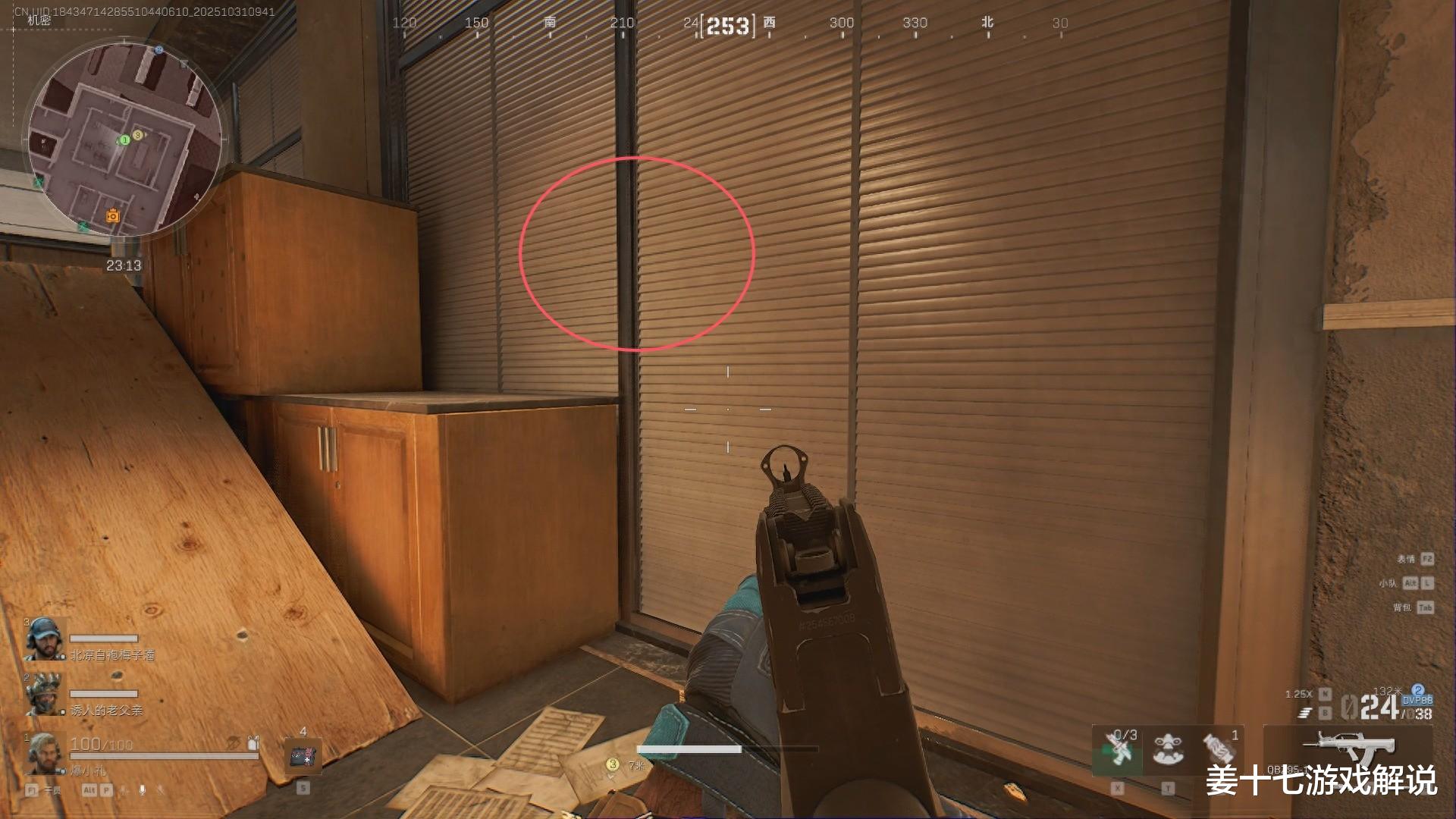 第一个:办公楼缝隙,这个点位最恶心的地方,是直接可以架死对面东楼跑过来的人,因为这个地方露出去的面积特别小,如果你不认真去看的话,是很难发现这个地方的,最关键的,哪怕对面发现你了,跟你火拼,也大概率拼不过去你,因为这个点位有个硬核的地方,就是刚好卡死在这个点位上,你打也打不到。