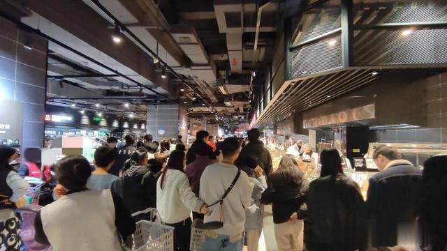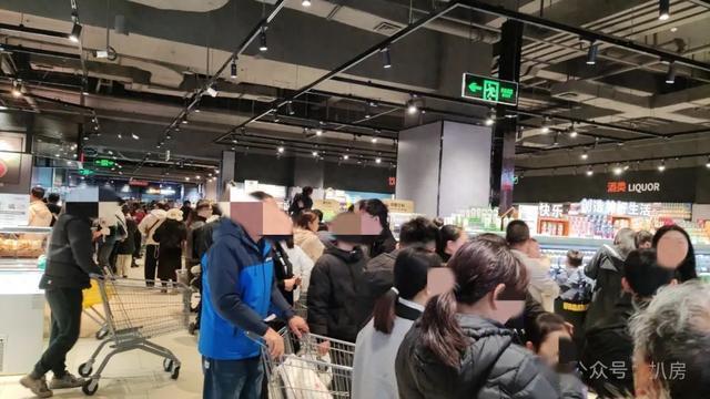 超市内场同样人潮拥挤,乌乌泱泱,根本挪不开脚。