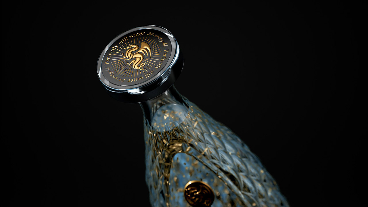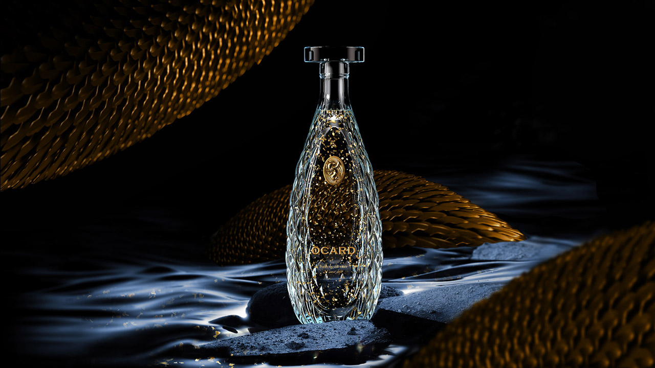 瓶型设计灵感源自传说中汲取生命力的巨龙,整体轮廓呈饱满流线型,自上而下覆盖仿生龙鳞纹理。晶莹剔透的玻璃瓶身精准还原龙鳞层叠的质感,在光影下流转如巨龙振翅的光泽;局部留白强化视觉呼吸感,正面镶嵌专属龙眼奖章,以神秘图腾强化品牌识别,直观传递传说中巨龙的睿智与尊贵。