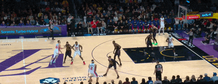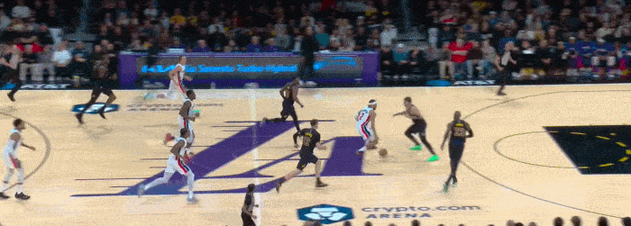 拉拉维亚以为他要走掩护 随后一个变向 但是也不加速 等到杜伦的跟进吸引艾顿防守后 再上篮