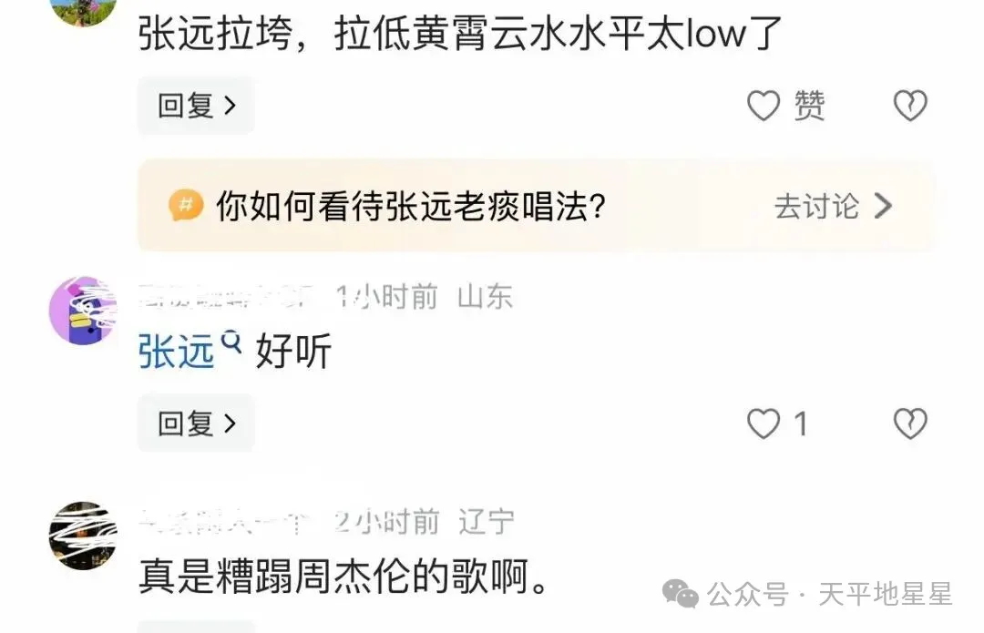 还有网友指出:张远和黄霄云两个人根本不像合作,而是在表演两首不同的歌,张远的这种唱法压根就不应该出现在《声生不息》的舞台上,真的太LOW了。