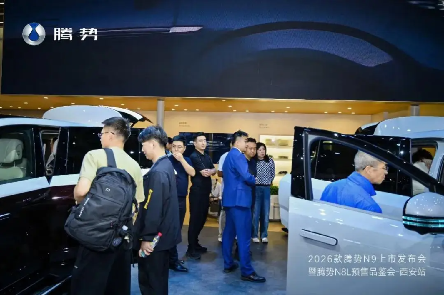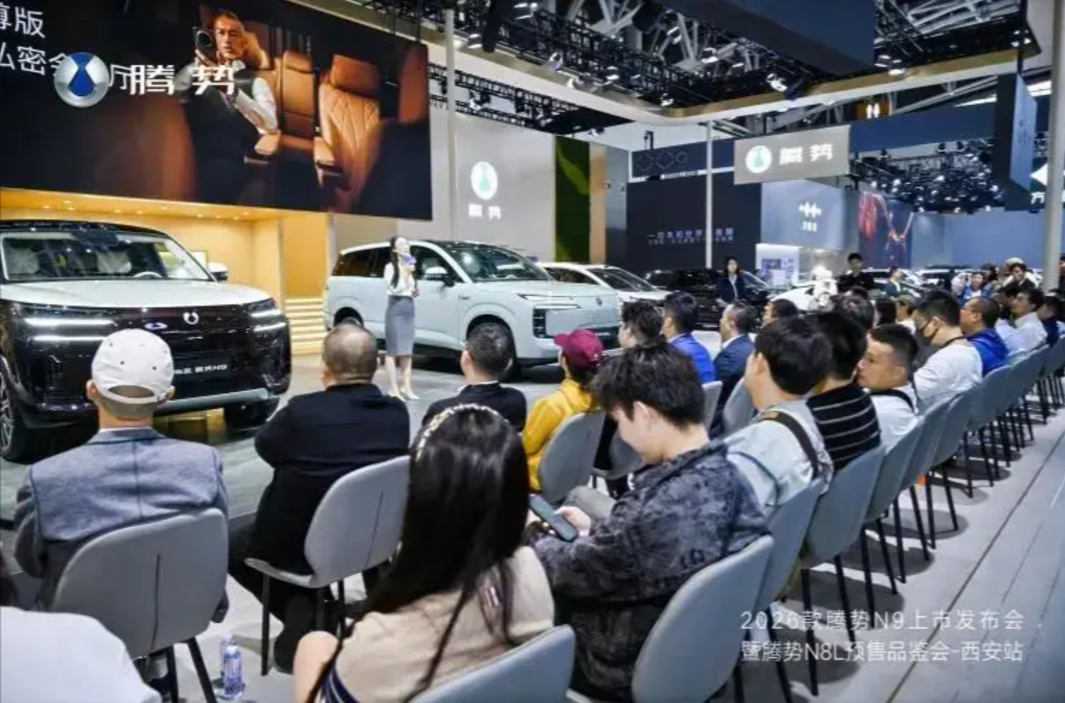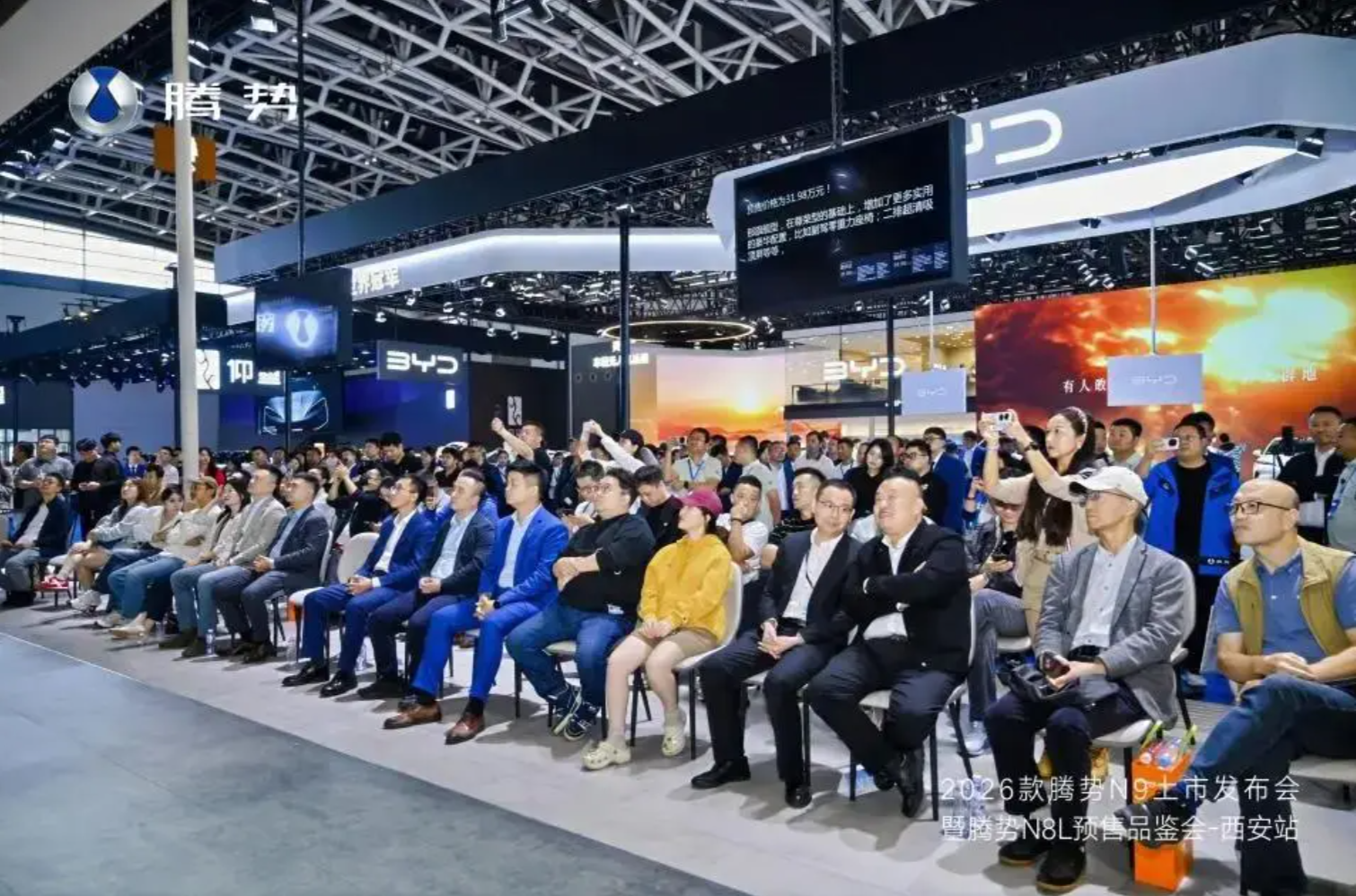 9月30日,西安国际会展中心4号馆腾势展台,腾势汽车举办了“2026款腾势N9上市发布会暨腾势N8L预售品鉴会”,活动现场邀请了西安本地30余家主流媒体及腾势车主,共同见证品牌旗舰SUV矩阵的全面进化。