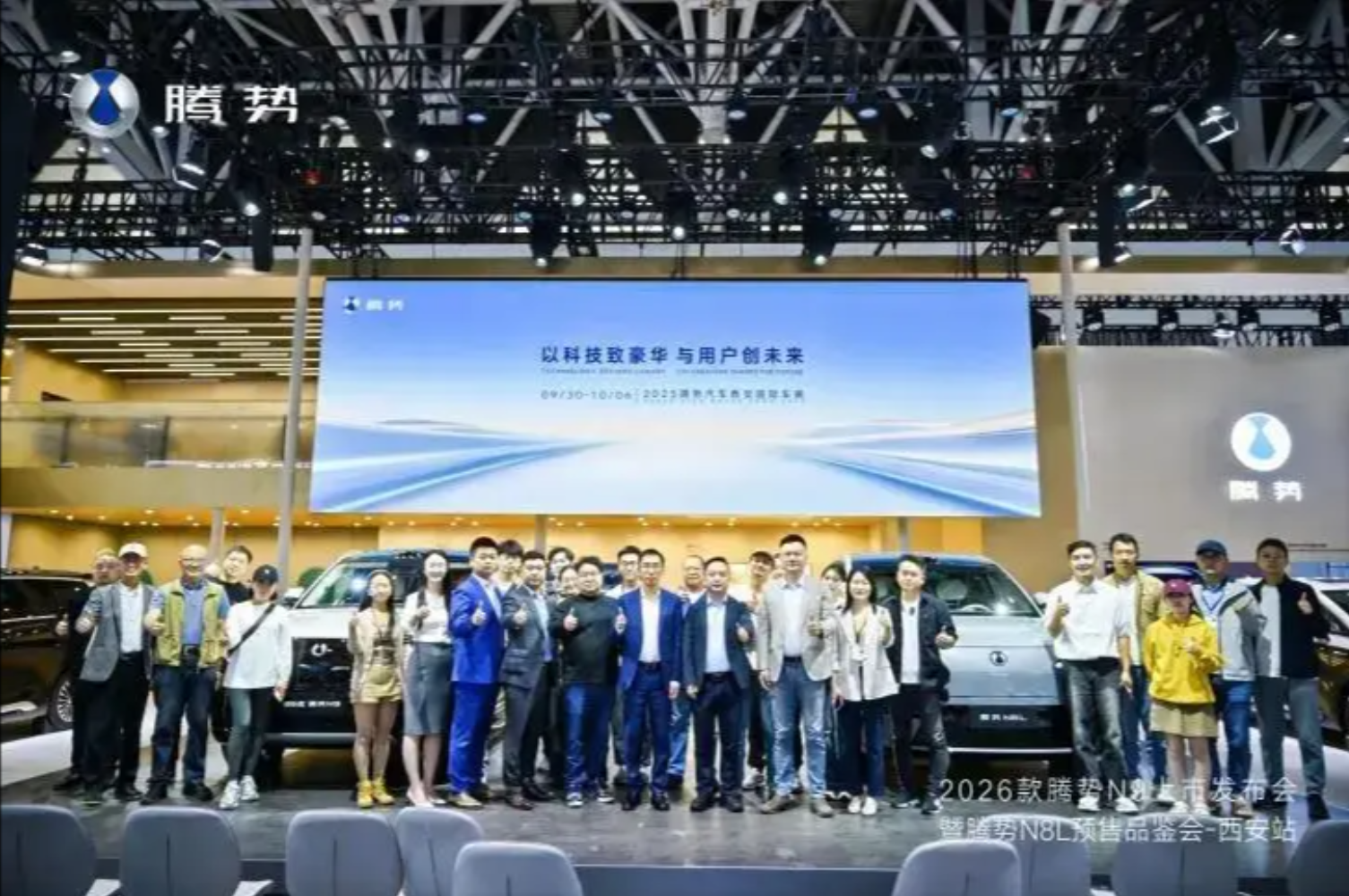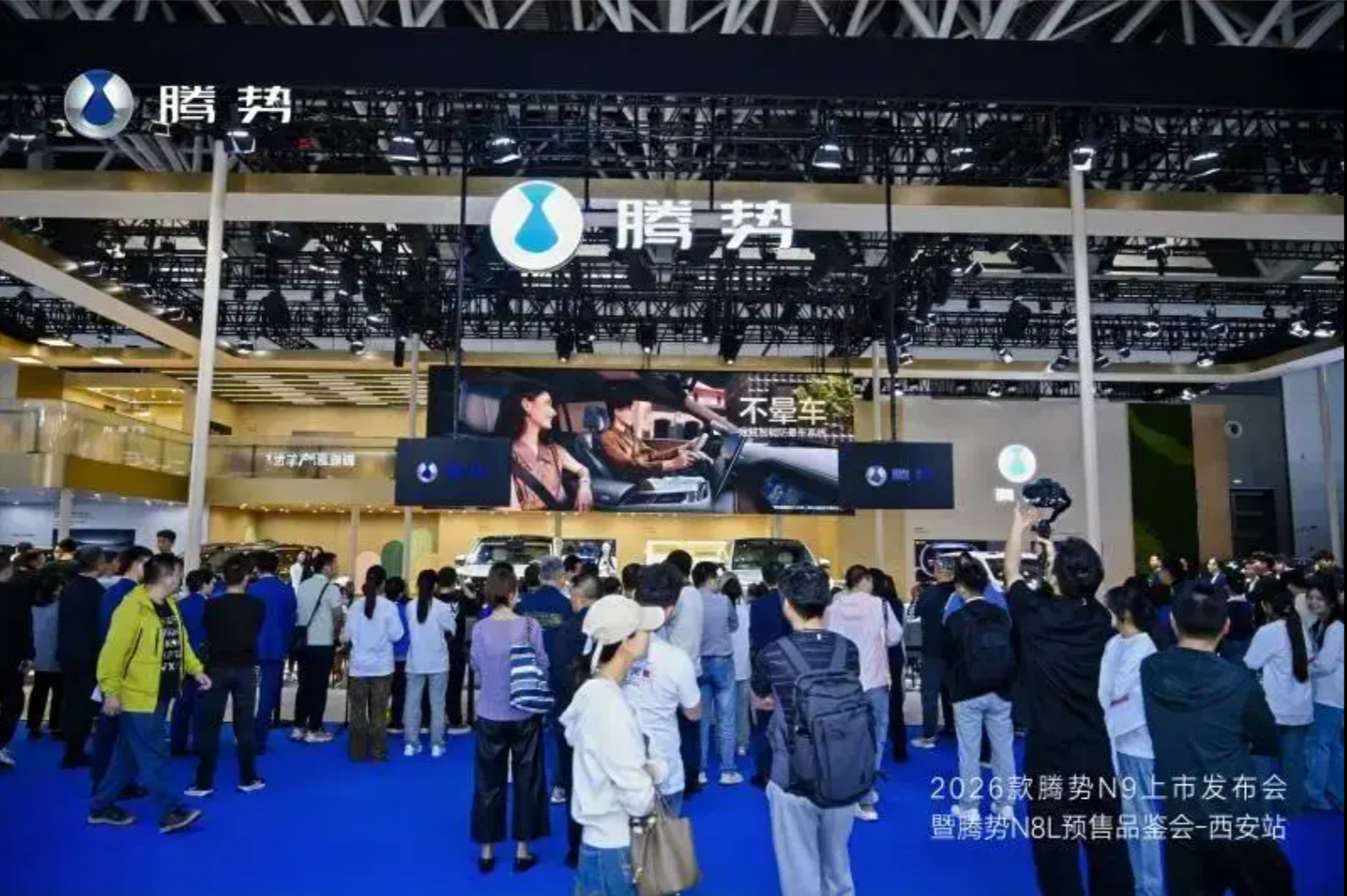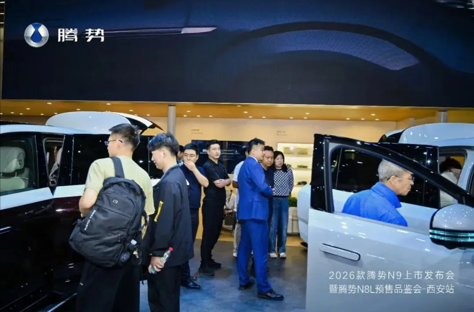 9月30日,西安国际会展中心4号馆腾势展台,腾势汽车举办了“2026款腾势N9上市发布会暨腾势N8L预售品鉴会”,活动现场邀请了西安本地30余家主流媒体及腾势车主,共同见证品牌旗舰SUV矩阵的全面进化。