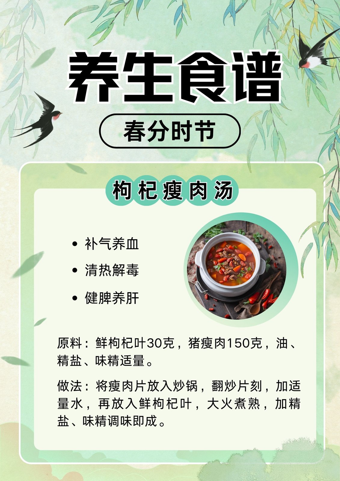 主食优选粳米、小米、薏米、山药等健脾祛湿之品,薏米搭配山药煮粥,健脾利水效果佳;蔬菜宜选春笋、荠菜、菠菜、韭菜、豆芽等应季食材,烹饪以清炒、清蒸、白煮为主,减少油炸红烧,避免加重脾胃负担;肉类选温而不燥的鸡肉、鲫鱼、瘦肉,清蒸鲫鱼、香菇炖鸡均适合春分进补。水果忌贪凉,草莓、樱桃、枇杷等应季水果适量食用,坚决避免冰镇水果和生冷饮品。
