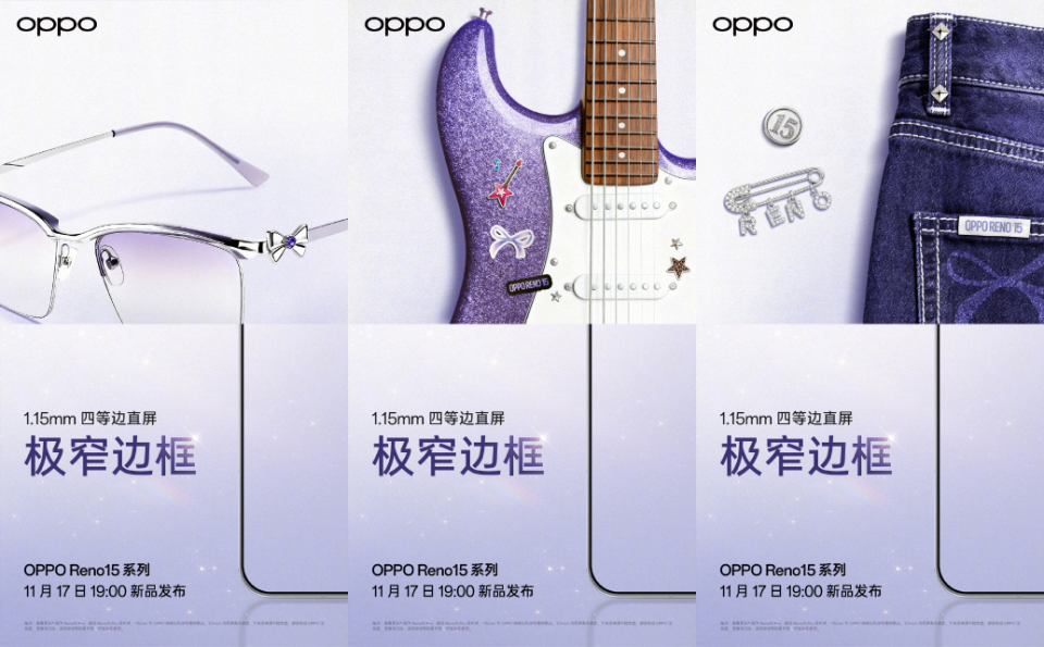 继 @OPPO 官宣了新一代Reno15系列将于11月17日发布之后,日前,官方再次公布了该系列新机将在成都科幻馆发布、仍将由宋雨琦代言以及该机采用1.15mm四等边直屏+四种配色等预热海报。同时,日前,OPPO Reno15系列新品发布会的“星光蝴蝶结”实物邀请函也陆续来到各大媒体和达人手中,其以独具匠心的星空投影灯和精致的蝴蝶结设计元素,提前向外界展现了新系列的美学理念。