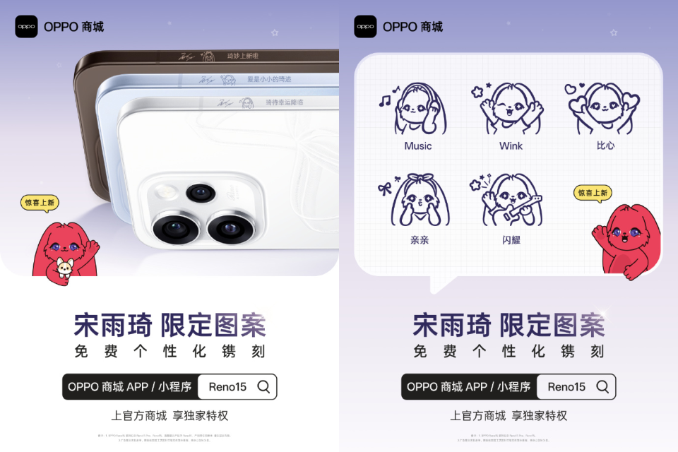 日前,@OPPO 再次发布Reno15系列的官宣预热海报,展示了该系列新机的握持感和特有周边配置。据官宣称,“可爱小包轻松装 单手握持也舒适!精致小直屏,精巧好手感”“全新OPPO Reno15 系列 「星光蝴蝶结」限定周边礼盒惊喜发布!超百搭的潮流配件+超丰富的惊喜周边,还有Reno Girl@宋雨琦_i-dle 为你留下的专属星光密语,快来get雨琦同款吧”同时,该新机的“@宋雨琦_i-dle 镌刻图案焕新登场!”