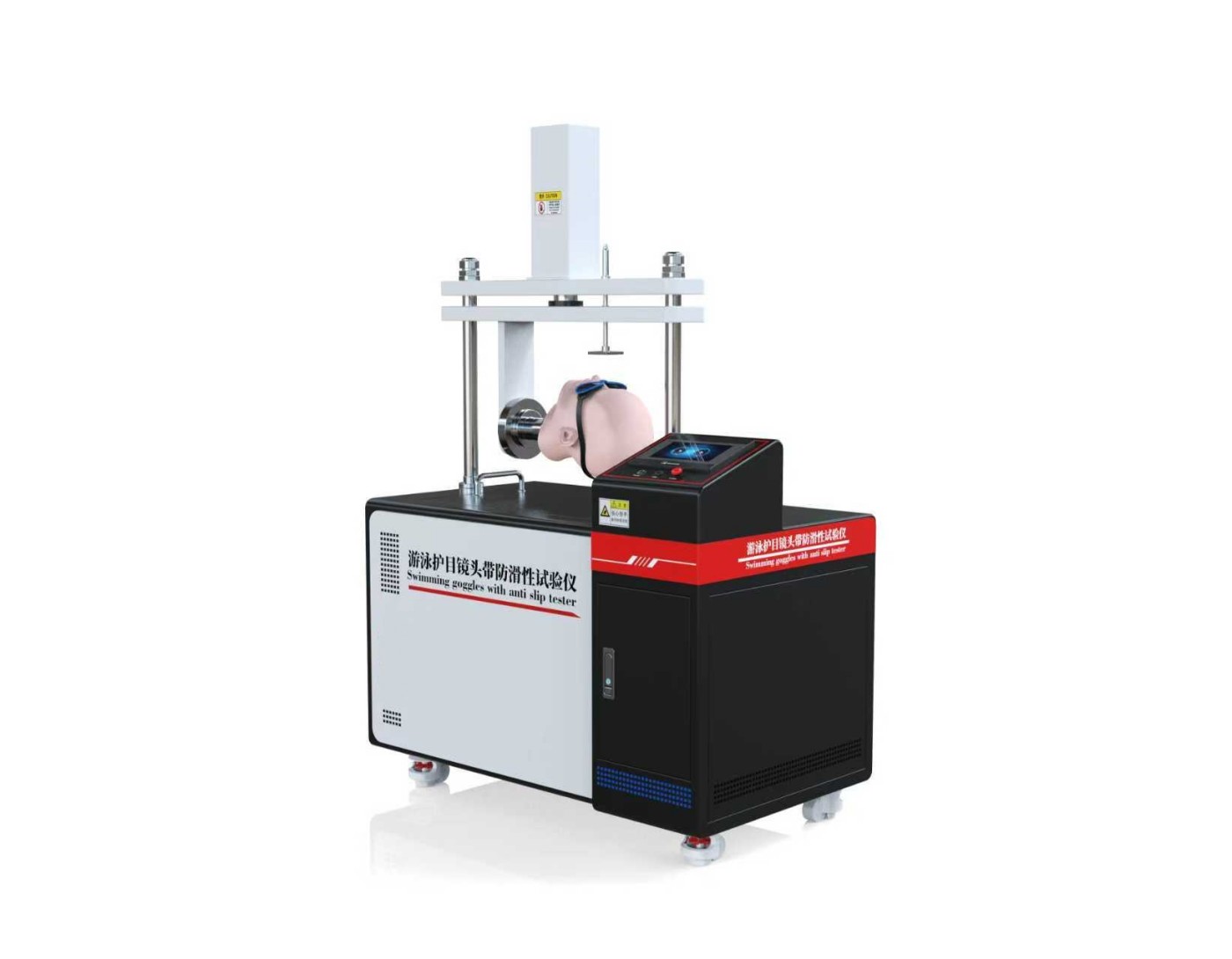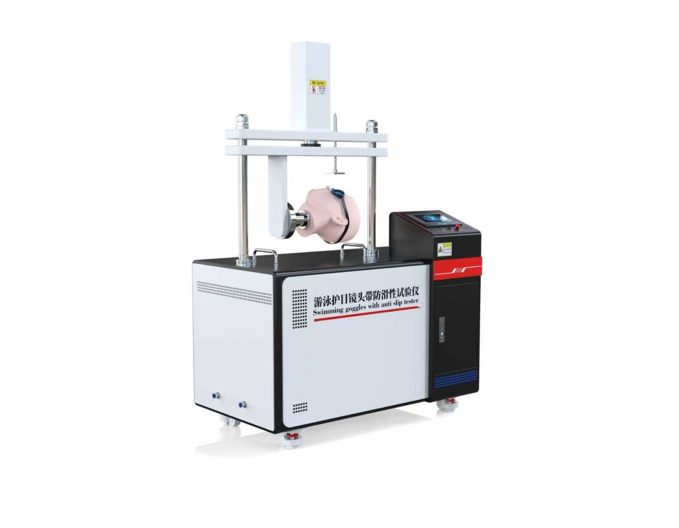 游泳护目镜头带防滑性试验仪是一种专业设备,用于量化评估游泳护目镜或泳镜头带在动态使用场景下的防滑性能。其核心功能是通过模