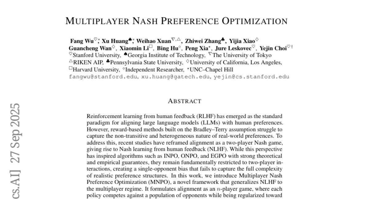 这项由斯坦福大学、佐治亚理工学院等多所顶尖院校联合完成的研究发表于2025年,研究团队由斯坦福大学的Fang Wu、佐治亚理工学院的Xu Huang以及知名AI专家Yejin Choi等人领导。有兴趣深入了解的读者可以通过论文编号arXiv:2509.23102查询完整论文。