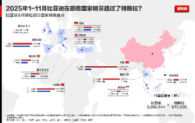 据易车数据显示,2025年1-11月比亚迪累计出口车辆87.8万台,同比增长高达144%。但就11月份来看,比亚迪乘用车出口为12.8万辆,同比增长更是高达313.4%。由此可见比亚迪的产品在海外市场越来越受到消费者们的认可。