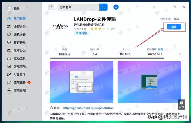 部分信创操作系统(如银河麒麟、统信 UOS)可在软件商店中直接搜索“LANDrop”并安装。