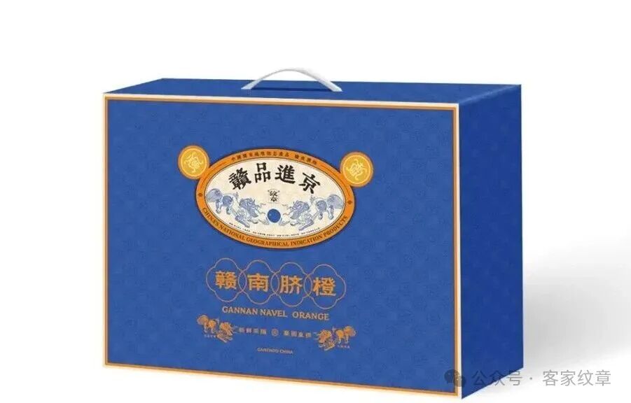 麒麟作为中国古代的瑞兽,象征着祥瑞、智慧与昌盛。在客家人的眼中,它是每天日出而作的勤劳,是向着光明奔跑的力量,是对丰收年景的执着追求,它是奔腾的、向上的、充满生命力的,完美诠释了客家人“不等、不靠,主动追逐”的美好精神品质。这一纹样被巧妙运用到产品包装设计中,赋予了赣南橙“麒麟送橙”(“橙”谐音“成”,凡事成、好事成、家事成、心愿成)的美好寓意,使每一颗脐橙不仅是舌尖上的享受,更成为承载祝福与文化内涵的载体。