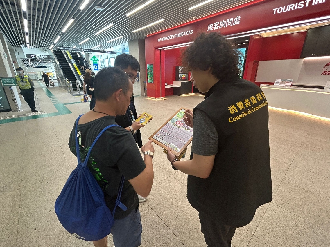 国庆中秋假期,澳门消费者委员会连日在主要出入境口岸派发《诚信店指南(2025)》(以下简称《指南》),向旅客介绍“诚信店”优质标志,以及澳门消费维权的途径,方便旅客在澳消费时获得更多的参考资讯,提升在澳门的消费体验。(上方图片来源:澳门导报)