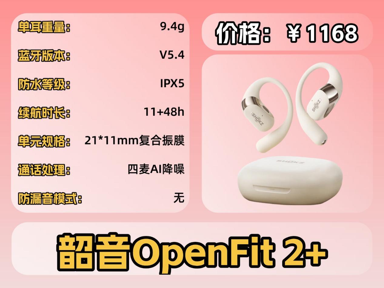 韶音OpenFit 2价格:1168 元